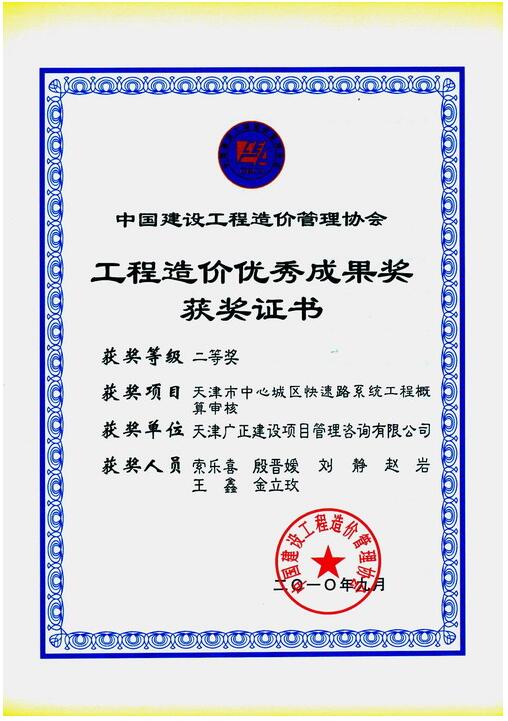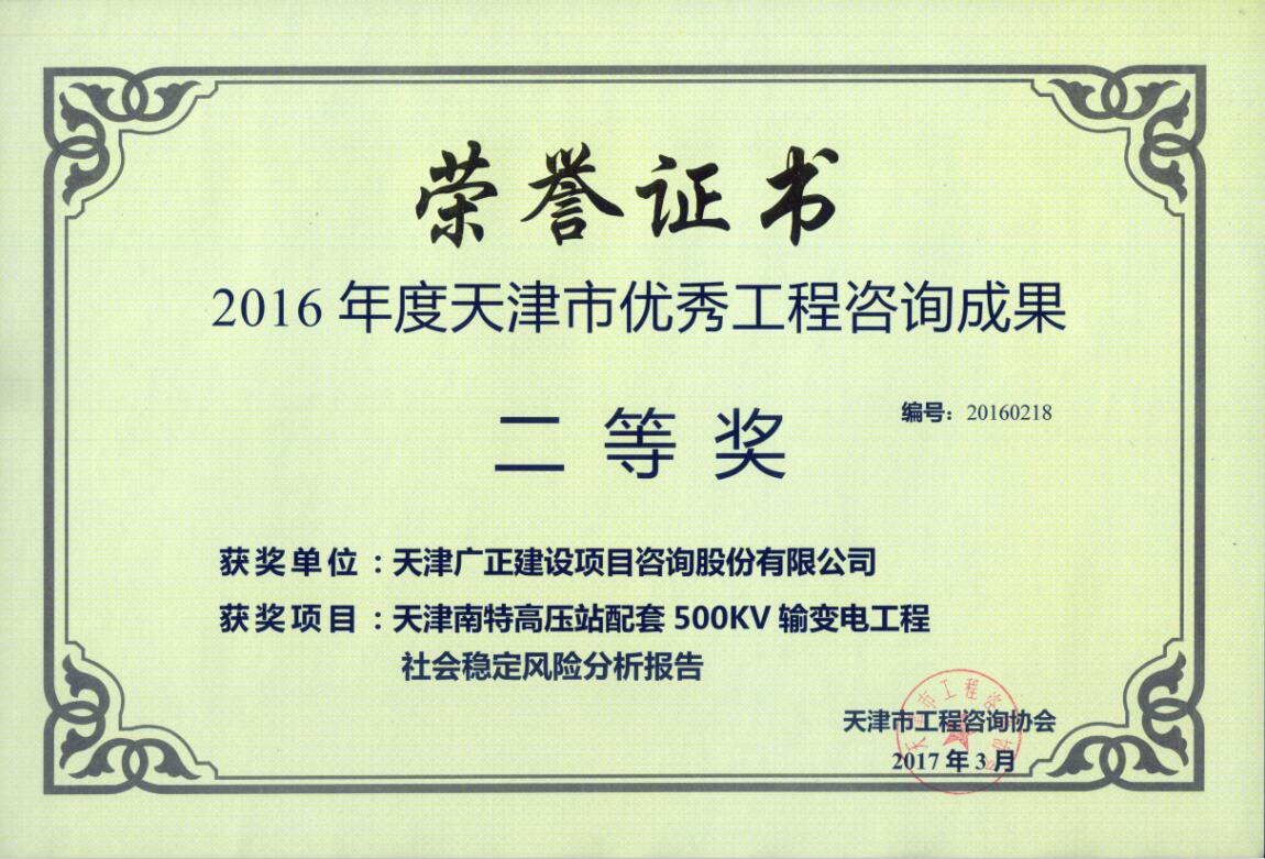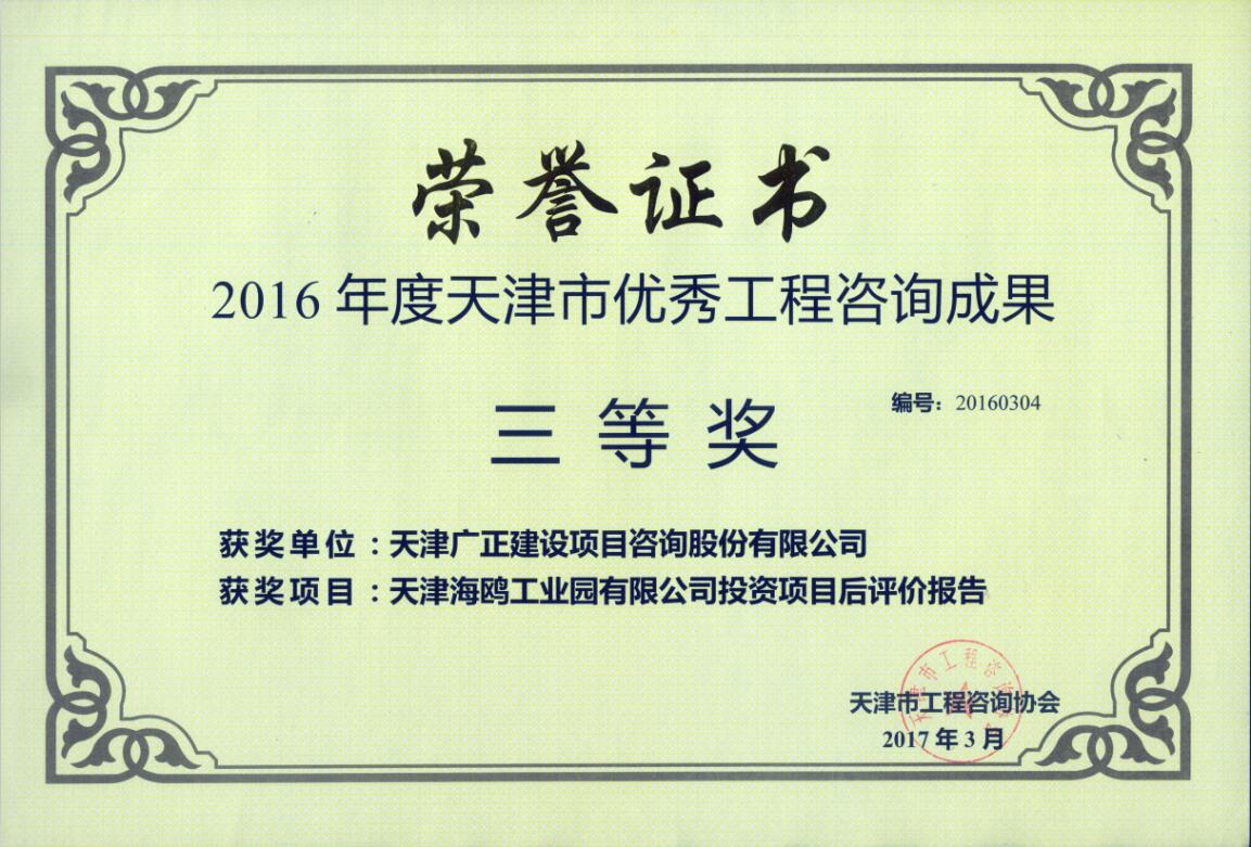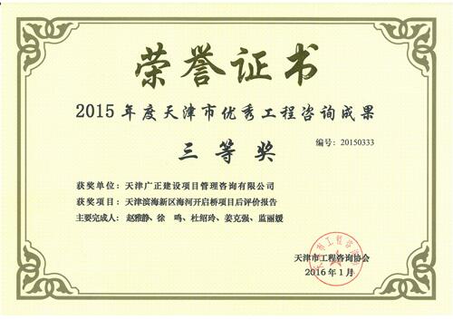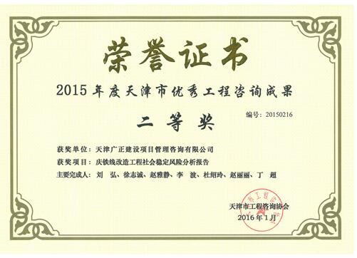 荣获2015年度天津市优秀工程咨询成果二等奖 -