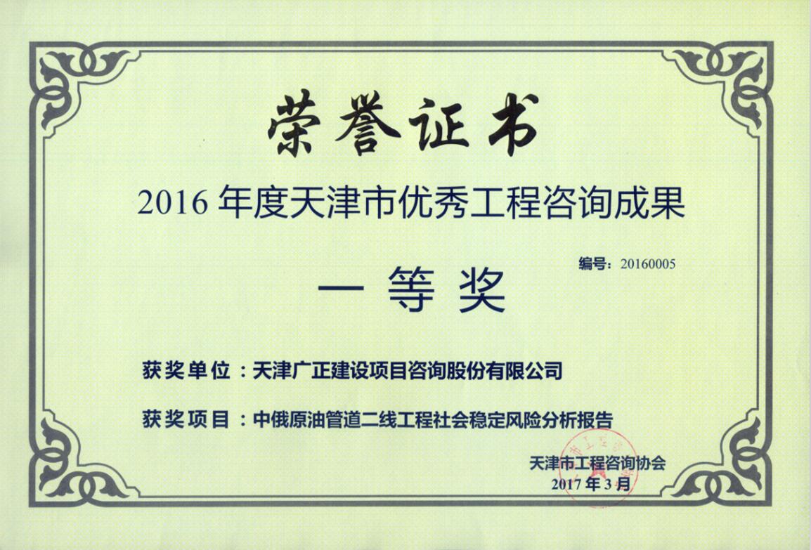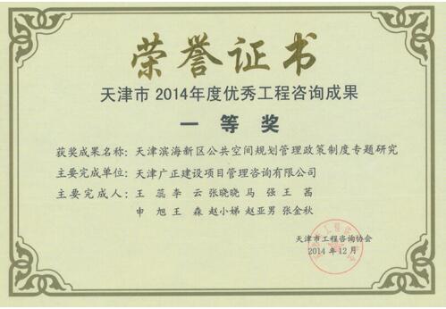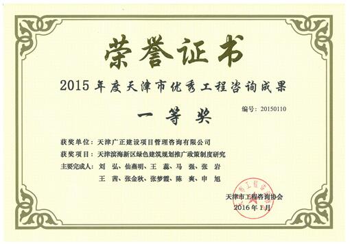 荣获2015年度天津市优秀工程咨询成果一等奖 -