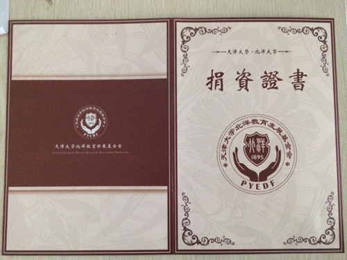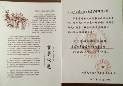 公司为天津大学汪波教授教育基金捐资20万元