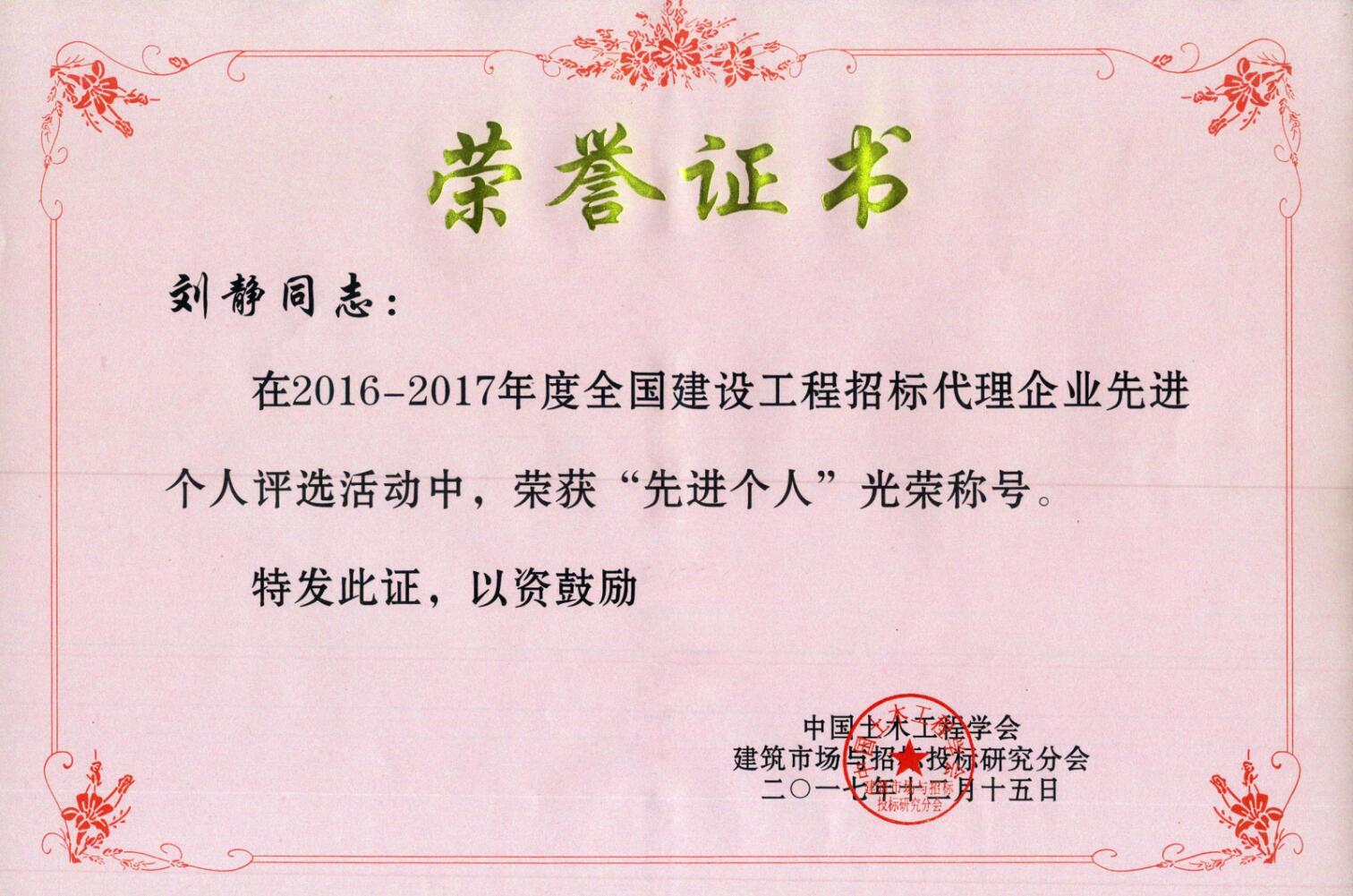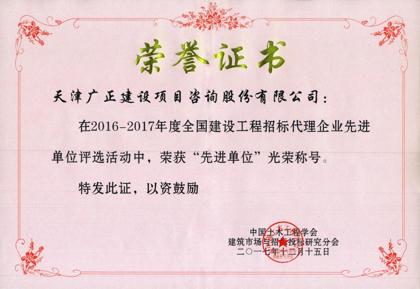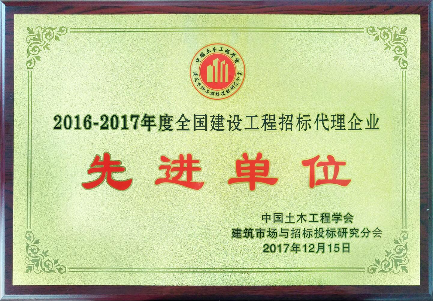 我司荣获2016-2017年度全国建设工程招标代理企业“先进单位”