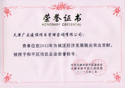 年为城区经济发展做出突出贡献,被中共天津市和平区委员会、天津市和平区人民政府授予和平区功臣企业荣誉称号。