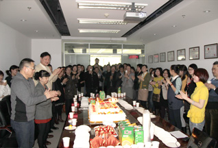 庆典首先回顾了公司的发展历程,总经理仙燕明先生对公司十年做了总结并对今后发展予以了再创辉煌的期望。之后公司董事长刘弘先生为在公司工作了九年的元老们佩戴了荣誉勋章。紧接着又给在乒乓球比赛中获奖的员工颁发奖品。最后在欢乐的气氛中同唱生日歌,品尝蛋糕的美味,在场的领导和员工共同举杯,互致祝福,期盼下一个十周年的到来。