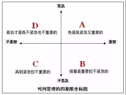 工作是以目标的实现为导向的,应从目标出发,按事情的 “重要程度” 编排行事的优先次序。所谓 " 重要程度 ",即指对实现目标的贡献大小。对实现目标越有贡献的事越是重要,它们越应获得优先处理 ;对实现目标越无意义的事情,越不重要,它们越应延后处理。简单地说,就是根据 “我现在做的,是否使我更接近目标 ” 这一原则来判断事情的轻重缓急。